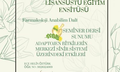 Yozgat Bozok Üniversitesi Lisansüstü Eğitim Enstitüsü Farmakoloji Anabilim Dalı tarafından düzenlenen seminer kapsamında, Ecz. Helin Öztürk (Öğrenci No: 91128324009), danışmanı Prof. Dr. Hamdi Temel eşliğinde “Adaptogen...
