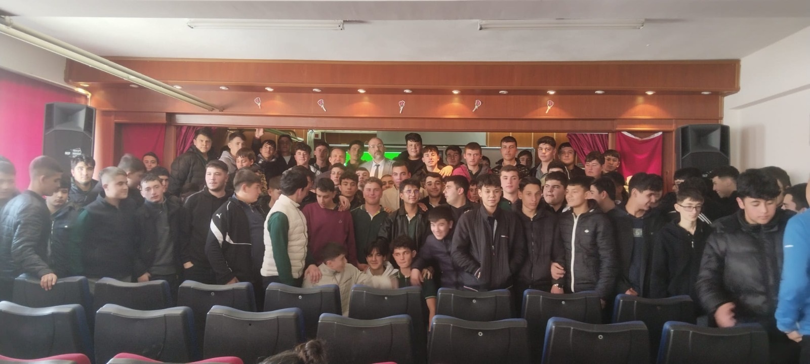 Etkinliğe ev sahipliği yapan Necmettin Yıldız Mesleki ve Teknik Anadolu Lisesi’nde gerçekleştirilen söyleşide, “Sessiz Tehdit: Görünmeyen Tehlike Mikroplastikler” başlığı altında, plastik atıkların doğada parçalanarak mikro boyutlara ulaşmasının ekosistem ve insan sağlığı üzerindeki etkileri kapsamlı şekilde değerlendirildi.
